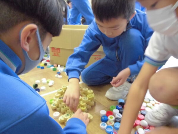 2年生2年 図画工作科「ペットボトルキャプで造形遊び」