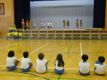 2025.10.6 NEW 1年生 2年生 2年生の前でがんばりました。 1年生は、毎日元気に学習発表会に向けて準備を進めています。 今日は、2年生がステージ発表の練習を見に来てくれました。 お客さんの前で演じるのは少し緊張しますが、1年生は、のびのびと発表することができました。 2年生からは、大きな拍手と「元気な声でよかった」「とても楽しかった」などのうれしいメッセージももらいました。 小学校生活初めての学習発表会に向けて、大きな自信になったようです。
