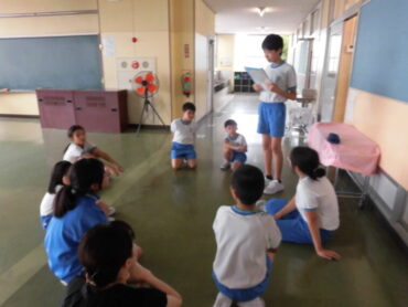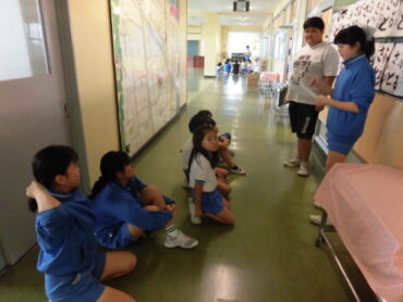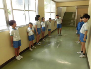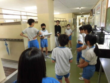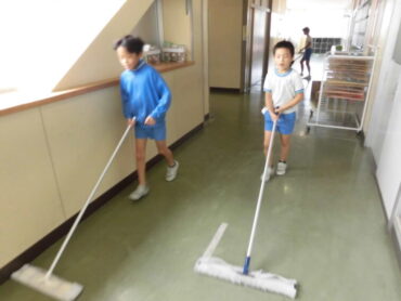 2025.10.8 1年生 2年生 3年生 4年生 5年生 6年生 全校生 後期縦割り清掃班の顔合わせ 縦割り清掃の班編成が変更されました。 各班が新しい掃除場所に集まり、自己紹介し合った後、役割を相談しました。 「新しい班で交流することが中心で、掃除はしなくてもよい」という約束でしたが、時間が余った班は短時間で軽く清掃を済ませていました。 やる気満々です。