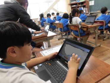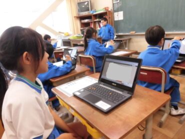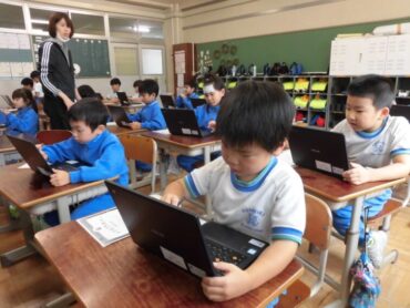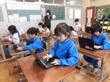 デスクトップ画面がでたら、今度はカメラでQRコードを読み込み、クラウドドリルに取り組みました。手書きも正しく読み取って採点してくれる機能に、子供たちは「やった!花丸や!」と大喜びしていました。