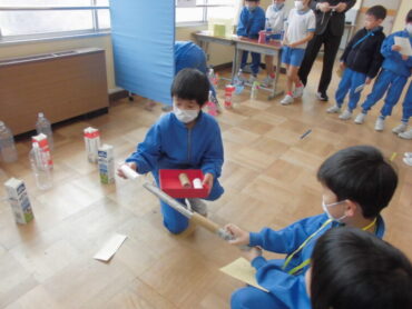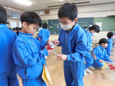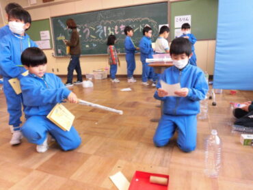 2025.11.26 1年生 2年生 2年 生活科「1年生をあそびランドにしょうたいしよう」 2年生が1年生をあそびランドに招待しました。 牛乳パックを使ったフリスビーや新聞紙で作ったロケットの射的、ストローのアーチェリーなど、子供たちがグループごとに工夫を凝らして考えた遊びで1年生と楽しみました。 28日の金曜日には、校区の保育園児が来校し、1・2年生共同でさらに盛大な「あそびランド」に招待します。 子供たちの笑顔の輪が広がることを楽しみにしています。