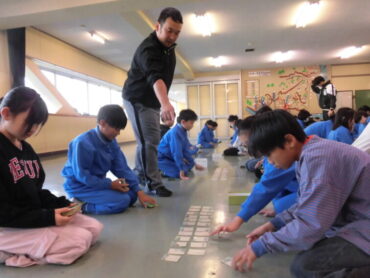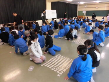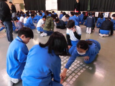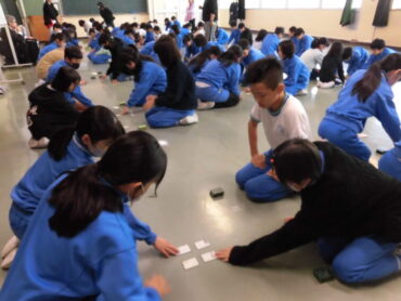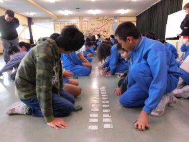 2025.11.28 4年生 5年生 6年生 4~6年 万葉かるた練習 「万葉かるた練習」が始まりました。 4~6年生全員が毎朝3階プレイルームに集まり、朝練を行います。 4人組で20の4人組を作り、50枚を終わった時点で一番得点の高かった児童が1つ上のグループに上がり、低かった児童がひとつ下のグループに移ります。 初めての練習でしたが、すでに上の句で取れるようになっている児童も見られました。 万葉集に触れるよい機会にもなります。今後の成長が楽しみです。