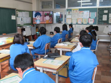 2025.12.1 5年生 6年生 歯と口の健やか道場 今年度は、5・6年生が「歯と口の健やか道場」のDVDを見ながら、歯と口の健康について学びます。 途中に、咀嚼チェックガムを1分間噛んで、ガムの色でかむ力を判定する活動がありました。普段あまり考えることのない「噛む」ことについて意識することができました。 また、規則正しい食生活や、歯科検診なども、歯と口の健康を保つためには大切だと分かりました。