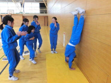4年生がマット運動に挑戦しています。