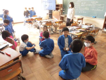 いろんな顔がくるくる変わる百面相や回転ずし、草原を駆け巡る大冒険など、それぞれが工夫を凝らした作品をグループで紹介し合いました。