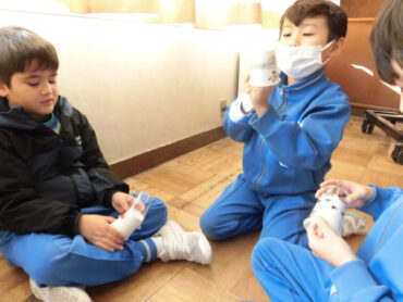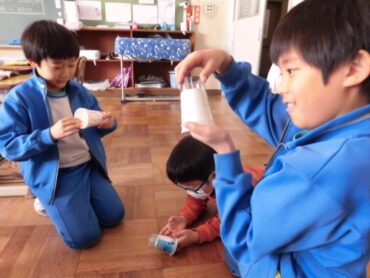 2年生が図画工作科で「コップくるくるチェンジ」に取り組みました。