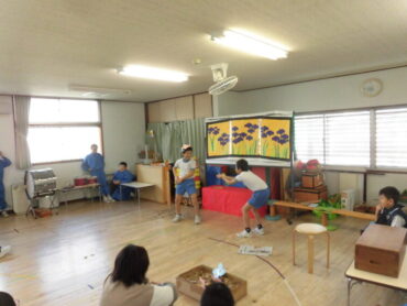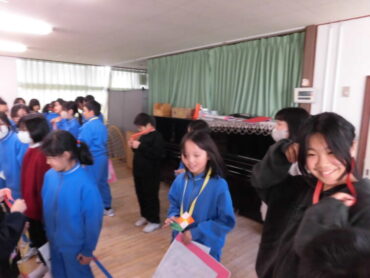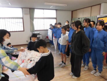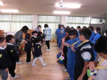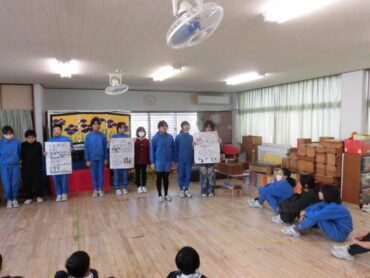 2025.12.10 NEW 5年生 5年 総合的な学習の時間「伏木の町に防火の心を広めたい」 5年生が今年度総合的な学習の時間で集めた防火の知識を手作りの劇とポスターにまとめ、伏木保育園の園児たちに伝えました。 楽しいところでしっかり笑ってくれ、大事なところは真剣に聞いてくれる園児たちの姿を見て、「きっと伏木を守る仲間になってくれる」と5年生の子供たちは確信していました。 発表を聞いてもらいに行ったのですが、5年生も保育園から歌と首飾りのプレゼントをもらい、交流の楽しさを感じることができました。