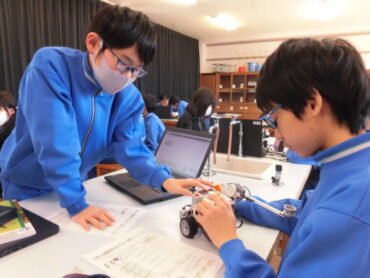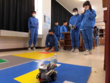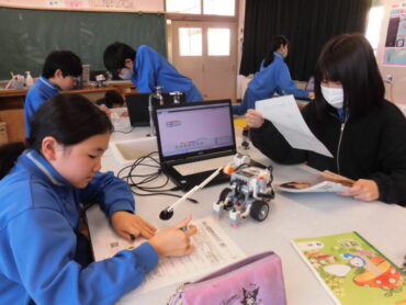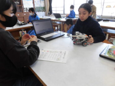6年生が理科でロボットのプログラミングに挑戦しています。