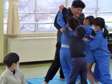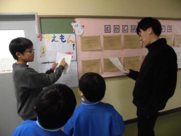 2025.12.18 1年生 2年生 3年生 4年生 5年生 6年生 全校生 6年 伏木小祭 6年生が17日の昼休みと18日の長休みと昼休みの3つの休み時間を使って、恒例の伏木小祭を開催しました。 今年は、スタンプラリー形式とし、すべてのアトラクションを回るとプレゼントがもらえる仕組になっています。 1~5年生の子供たちが、おばけ屋敷やボーリング、だれでしょうクイズ、ララえもん探し、相撲に挑戦するなどの5つのコーナーを行列を作って楽しみました。