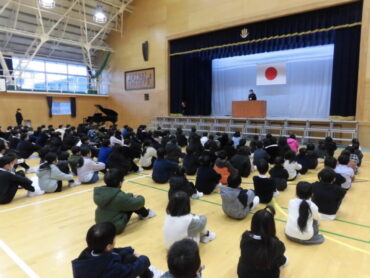 2026.1.8 1年生 2年生 3年生 4年生 5年生 6年生 全校生 3学期 始業式 3学期の始業式を行いました。 校長先生の話では「わくわくする目標を立てて、1日、1週間と小さな目当てをもって努力を積み重ねて行ってください」と、楽しい1年にするコツを教えてくださいました。 うま年作文では、 「う」れしいきもちと 「ま」えむきなエネルギーを 「ど」んどんつなげて 「し」あわせな笑顔の1年にしよう と、新しい年に希望がふくらむ呼びかけを行いました。 今年も楽しさをつなげる学校づくりに取り組んでいきます。 よろしくお願いいたします。