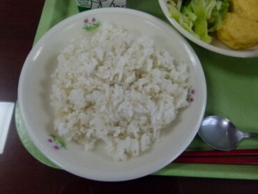 今日の給食委員会のお昼の放送では、「給食を食べられるのは、たくさんの方々のおかげです。感謝して食べましょう」と呼びかけていました。