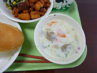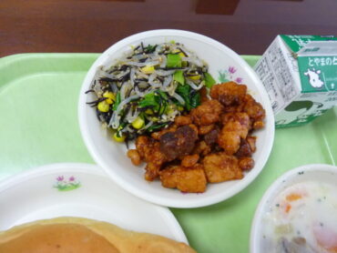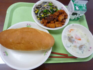 2026.1.27 1年生 2年生 3年生 4年生 5年生 6年生 全校生 学校給食週間2日目 昨日から始まった学校給食週間。今日は、2日目です。 今日のテーマは、「すべての人に健康と福祉を ー成長期の栄養たっぷり献立ー」です。 レバーや大豆、小松菜、ひじき、鮭、きのこ等、カルシウムや鉄分、食物繊維がしっかりとれる献立でした。パンは、発芽玄米パンです。 学童期は、体の成長に必要な骨が作られる大切な時期です。骨を作るもとになる栄養たっぷりのメニューでした。