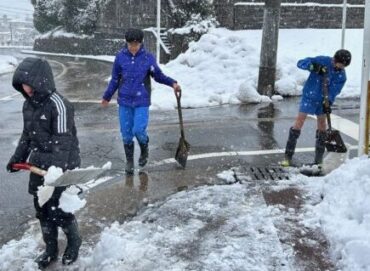 授業での話合いで、地域の一員として自分たちにできることを実行したいという願いから除雪をしようという計画を立てました。