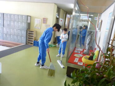 2026.2.13 NEW 1年生 2年生 3年生 4年生 5年生 6年生 全校生 清掃をがんばっています。 毎日、縦割り清掃に取り組んでいる子供たち。 最近は、来週行われる創校記念式に向けて、より丁寧に掃除をしています。 今日は、本番直前でもあり、モップや掃き掃除、拭き掃除など、丁寧に取り組む姿が多く見られました。 しゃべらず、静かに掃除をする様子から、真剣さが伝わってきます。 会場の準備も進み、きれいな校舎で気持ちよく創校記念日を迎えることができます。 学校全体でお祝いの気持ちが高まっています。