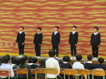 式典では、厳かな雰囲気の中、子供たちは真剣に話を聴き、153年の歴史と伝統を実感することができました。これまで練習してきた歌も、会場いっぱいに響きわたる歌声を披露することができました。