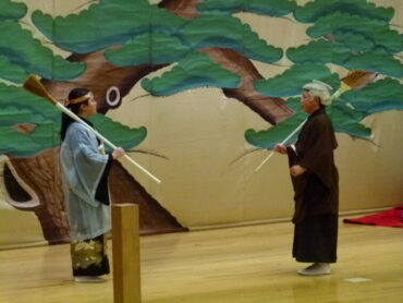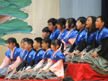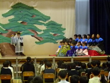 これまでの練習の成果を発揮し、動きや声の大きさ、言い回しなど、すべてに全力を注いで、能「高砂」の舞台を見事に演じ切りました。