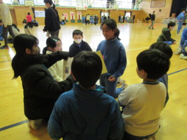 次に、3年生が全校ゲームを行い、なかよしの輪が広がりました。