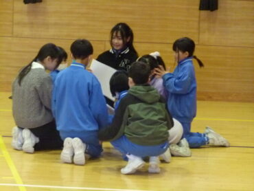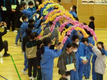 最後は、これまでずっと一緒に活動してきた縦割り班で集まり、6年生にプレゼントを渡して感謝の気持ちを伝えました。