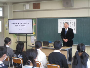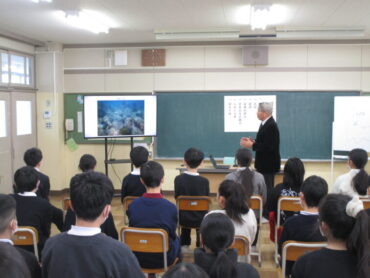 長年にわたる環境保全活動の結果、伏木の海に自然の美しさが戻ってきていることをご紹介いただき、卒業を控えた6年生に「どんなことも、がんばれば何とかなる」という温かいメッセージをくださいました。